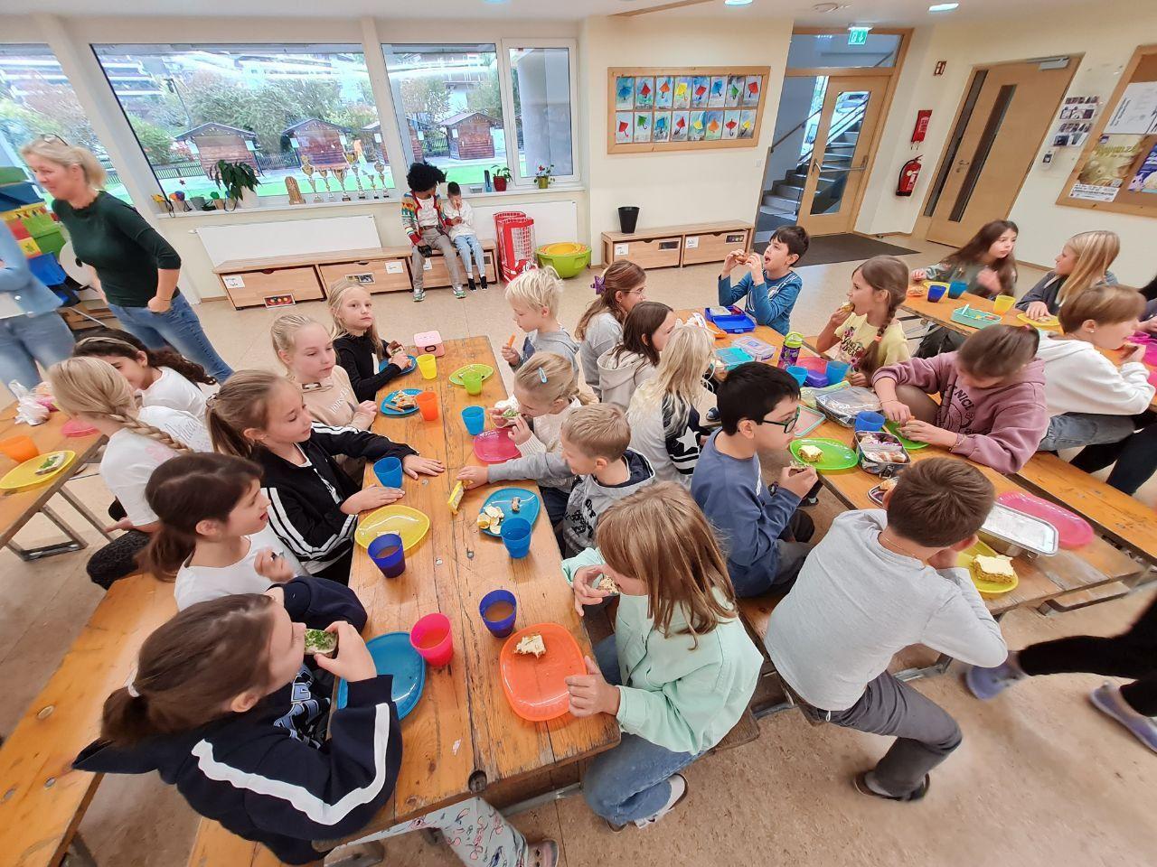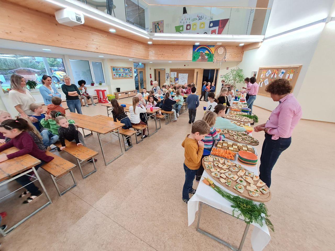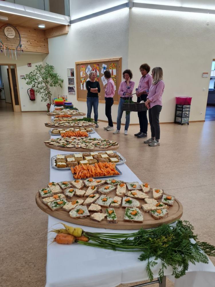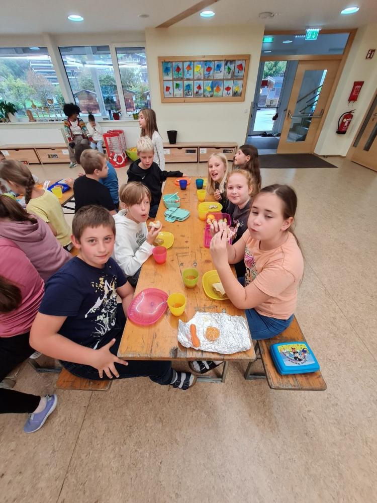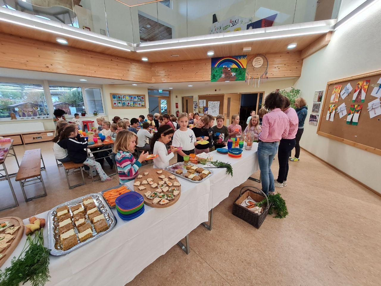 Vielen Dank an die Scheffauer Bäuerinnen, die uns heuer zum Welternährungstag wieder besuchten und uns allerlei Wissenswertes über die Karotte erzählten. Neben den Infos über das tolle Wurzelgemüse haben uns ganz besonders die Köstlichkeiten begeistert, die wir probieren durften: vom Karotten-Apfelsaft bis hin zum Karottenkuchen und leckeren Aufstrichbroten.