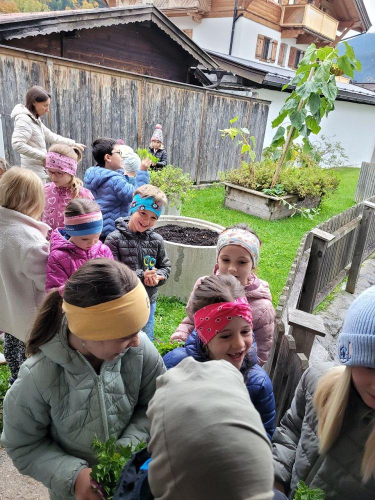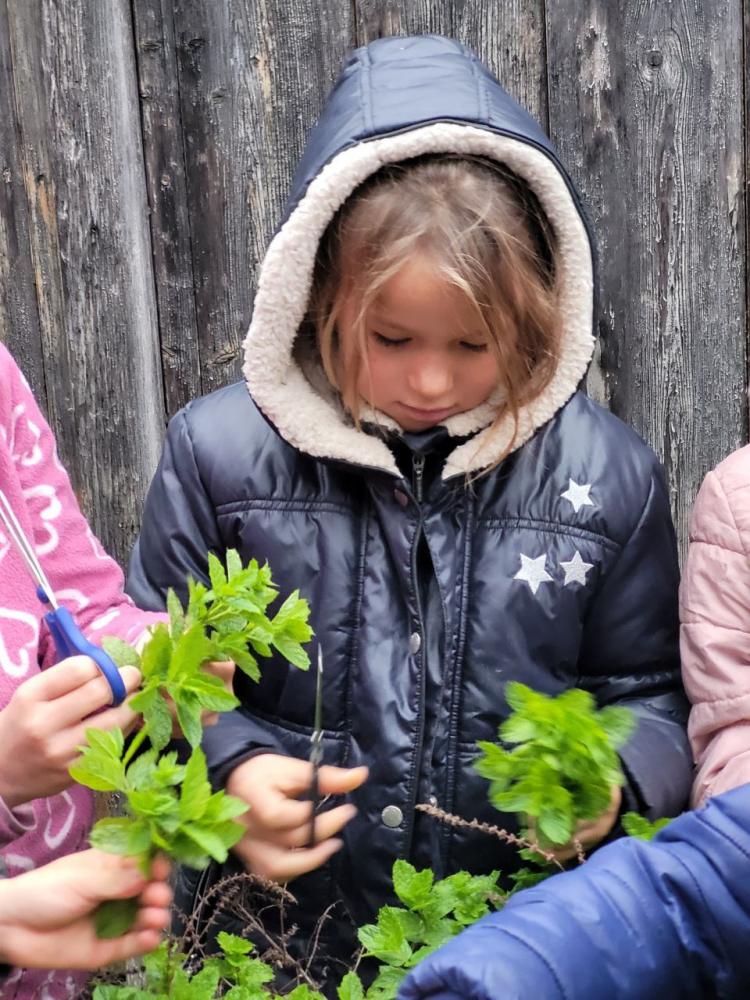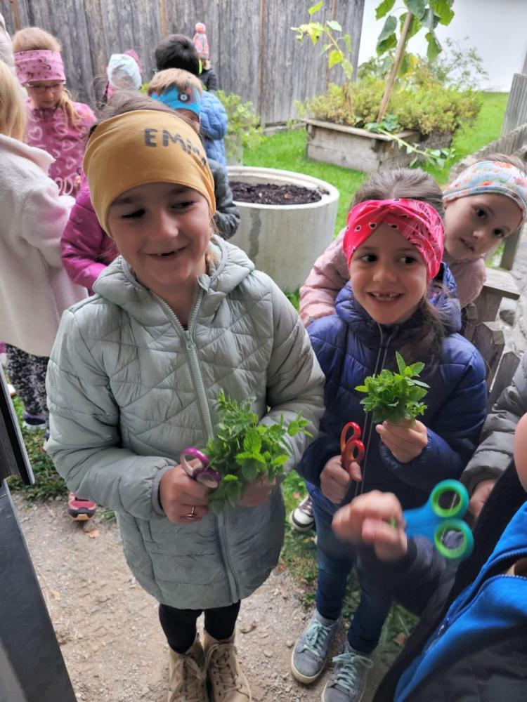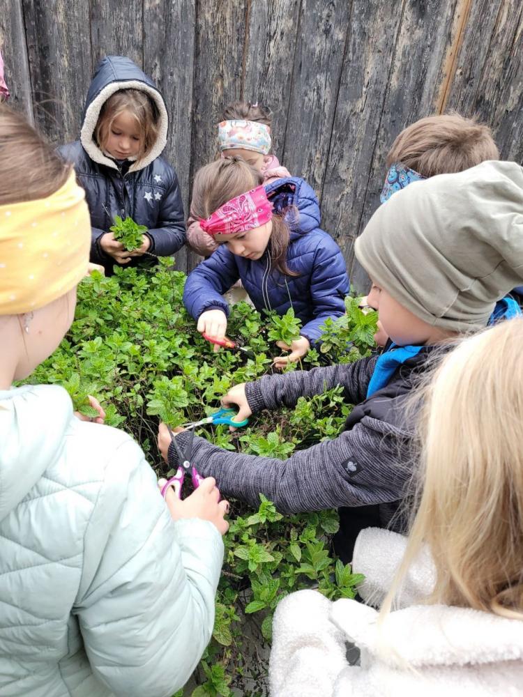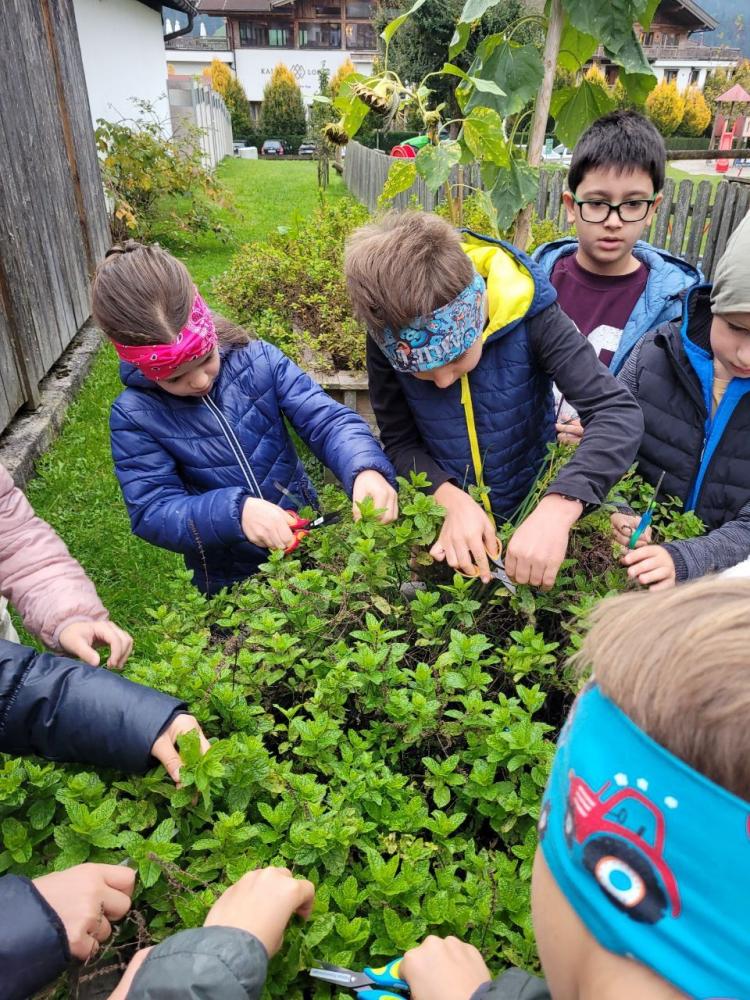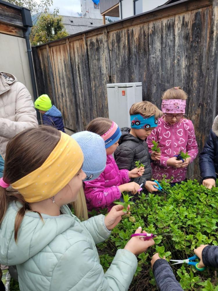 Die Kinder der zweiten Klasse haben heute im Schulgarten Pfefferminze geerntet und anschließend einen leckeren Tee zubereitet.