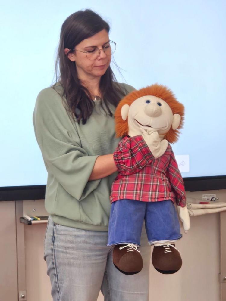 Elisabeth begeisterte alle Kinder für ein ausgewogenes, gesundes Frühstück, unterstützt von ihrem treuen Begleiter Bruno.
