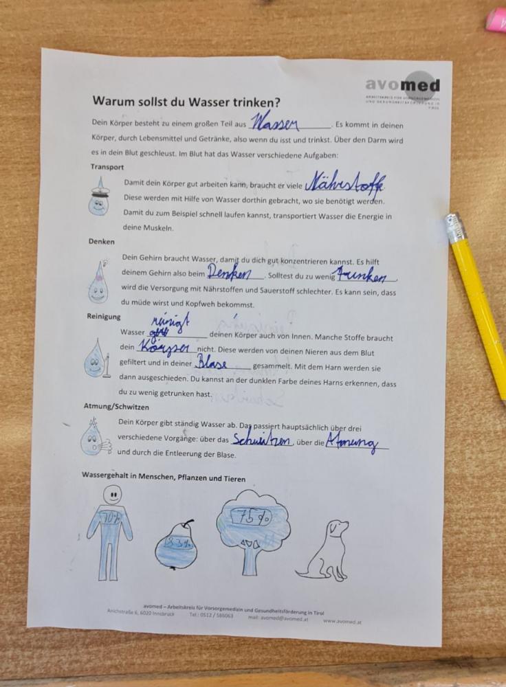 Die SchülerInnen erfahren, wie Wasser den Körper unterstützt (z.B. beim Denken, der Regulierung der Körpertemperatur und dem Transport von Nährstoffen) und wie wichtig ausreichendes Trinken für Konzentration und Wohlbefinden ist.