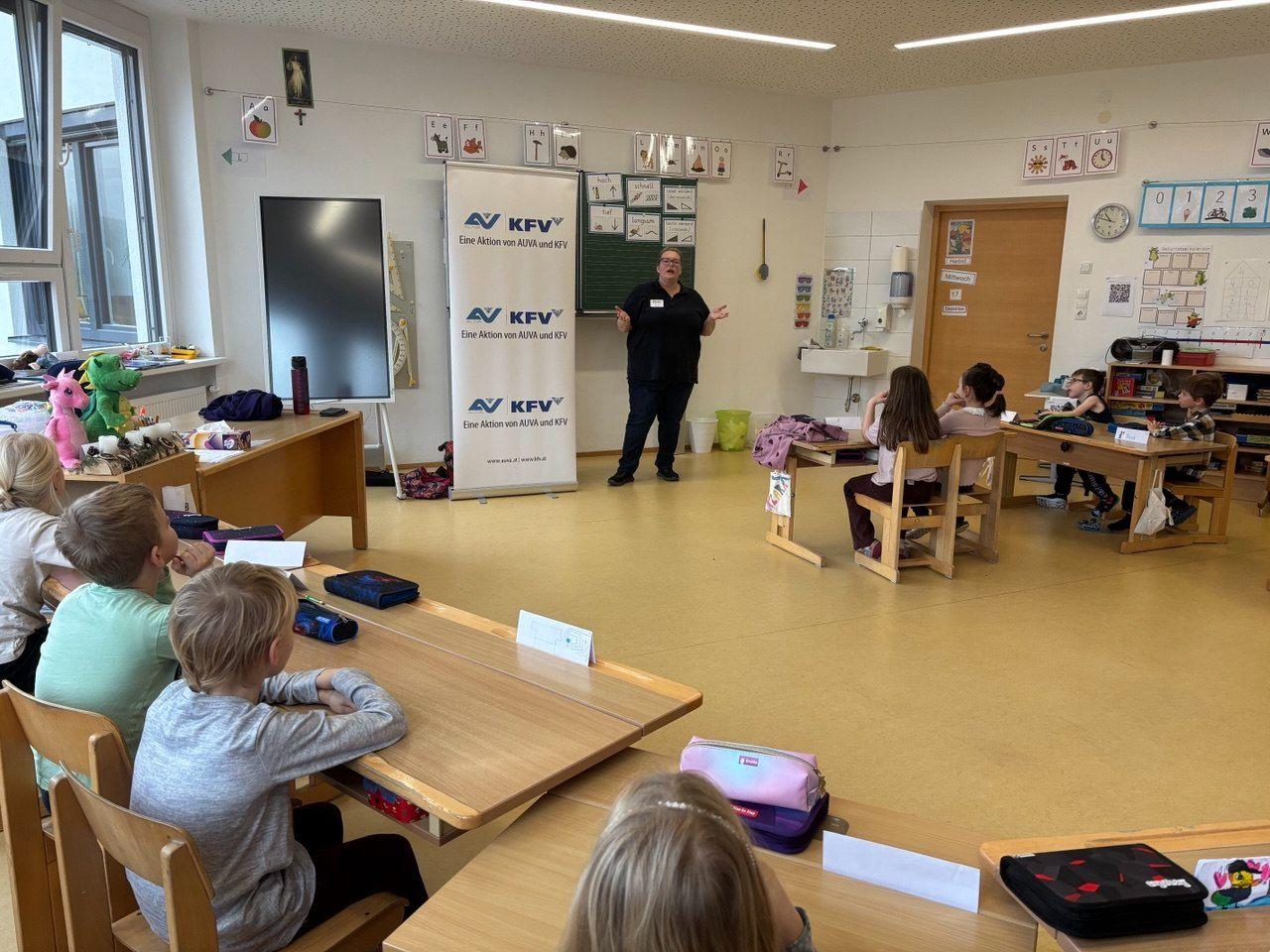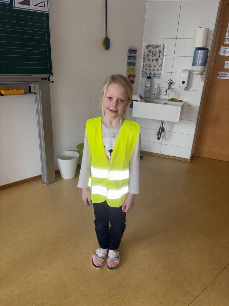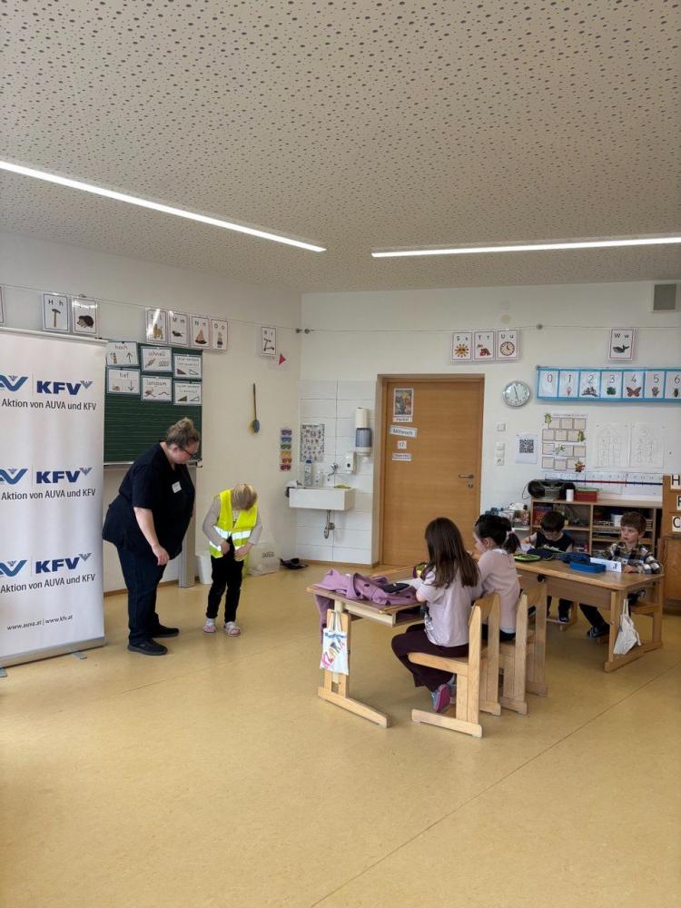 Dazu gab es vom Verein ‚Sicheres Tirol‘ ein Geschenk-Paket mit einer Sicherheits-Weste, die die Kinder auf dem Schulweg tragen sollen.