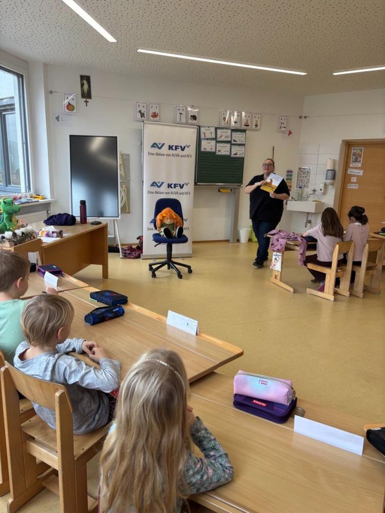 Nach den spannenden Projektstunden bekam die 1. Klasse nach der Pause heute auch noch Besuch von Rebecca. Vom Kuratorium für Verkehrssicherheit wurde uns eine Einheit mit dem Känguru Känga angeboten, wo die Kinder viele interessante Sachen erfuhren. Danke für die Informationen und den tollen Känga-Reflektor-Anhänger!